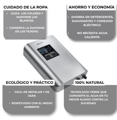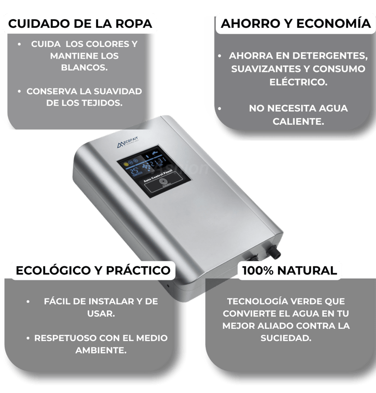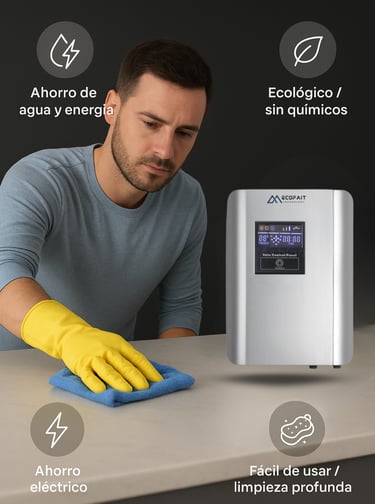 Con ECOFAIT disfrutarás de un sistema fácil de usar, eficaz, saludable y 100% ecológico, que además te permite ahorrar en electricidad, detergentes y productos de limpieza.